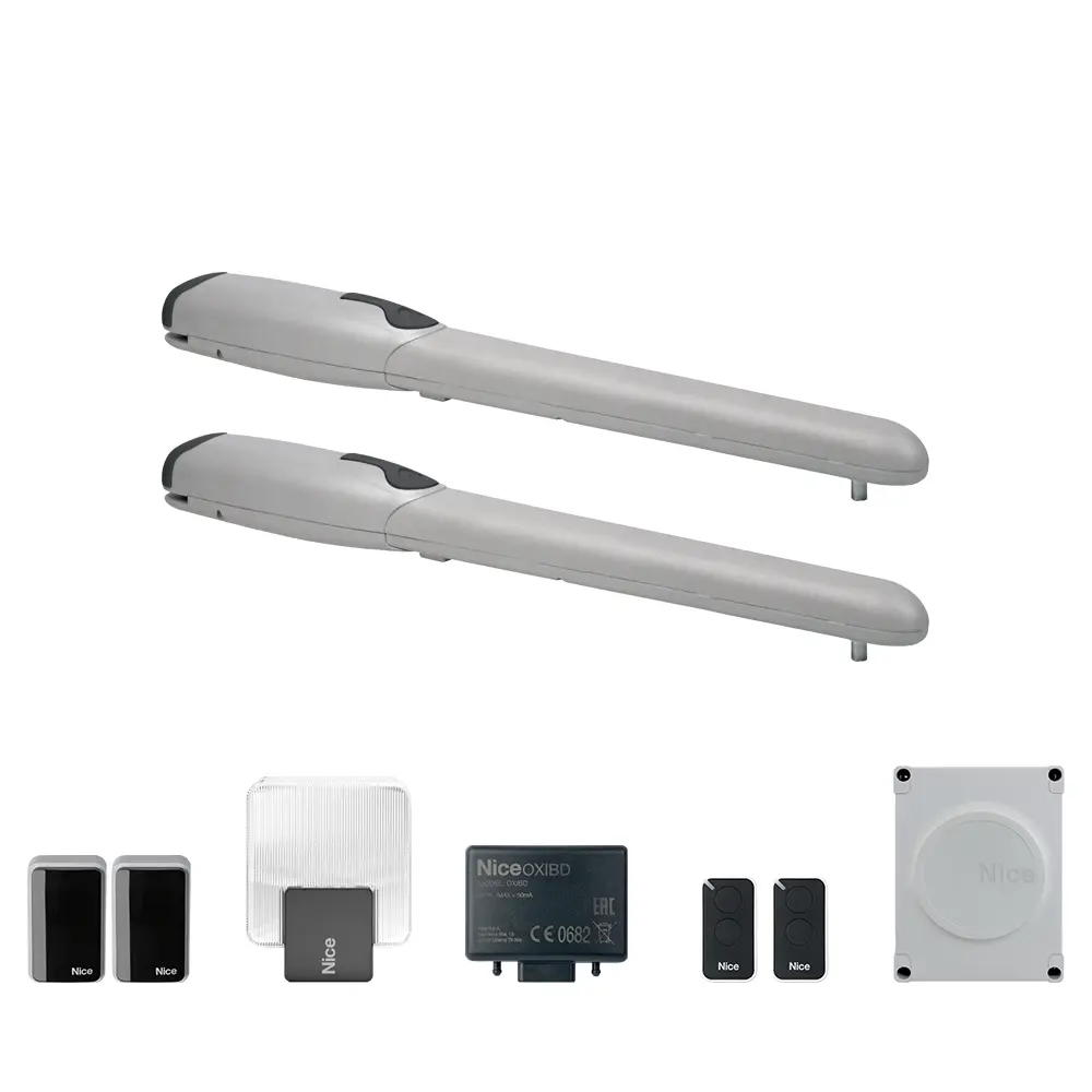 Nice Hyppo 7005 artiküleli kollu dairesel kapı motoru seti; 2 kanat toplam 7m, 230V AC. Geniş sütunlu ve kalın duvarlı kapılarda kollu montaj avantajı. Orta yoğunlukta kullanıma uygun.