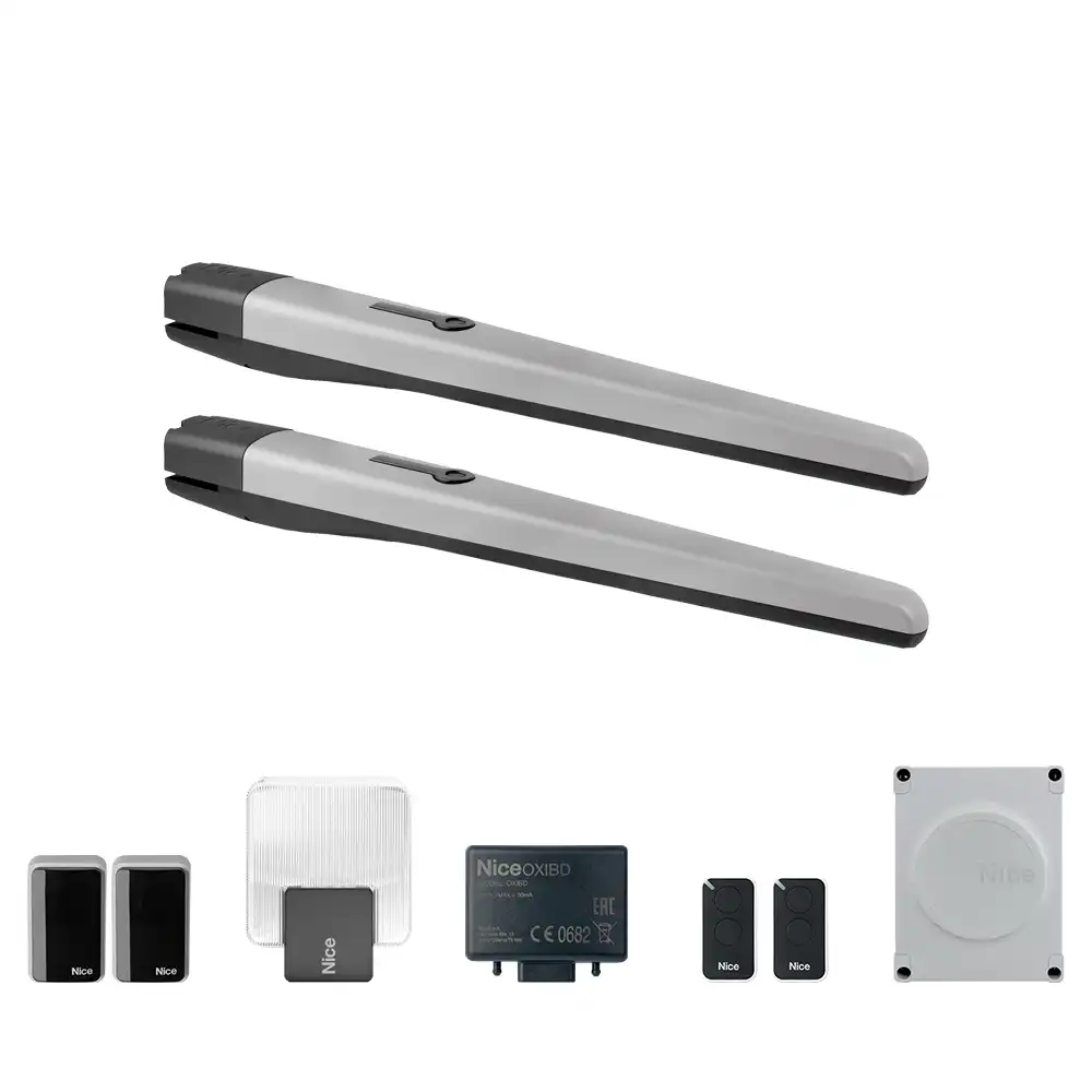 Nice Toona 5024 çift motorlu set; 10m toplam, 300 kg, 24V DC, akü destekli. Yoğun kullanıma uygun.